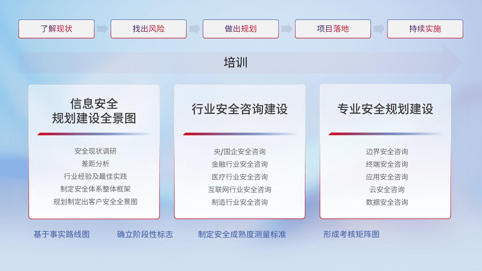 梳理客户信息安全现状调研、、、差距分析结果,,,,结合行业先进经验及最佳实践,,,制订客户的信息安全管控体系总结架构,,,最终形成一个完整的客户信息安全规划与建设的全景图。。