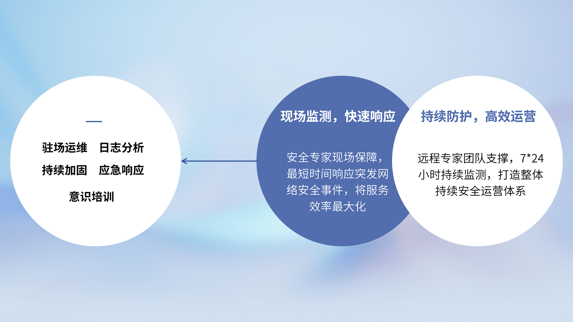 针对客户行业特性,,提供专属的一站式安全管理服务,,帮助客户全面感知网络空间威胁,,,通过安全专家的线上、、、线下防护支持,,,实现风险闭环,,将安全保障常态化,,为客户打造常态化安全运维运营服务。。。