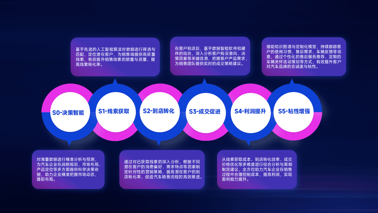 通过拓宽潜在客户来源、、优化线索分配并提高到店转化率,,,,以增强销售效率。。同时,,,利用线索数据不断优化分析模型,,,,有效提升转化率,,,,扩大营销影响力。。。